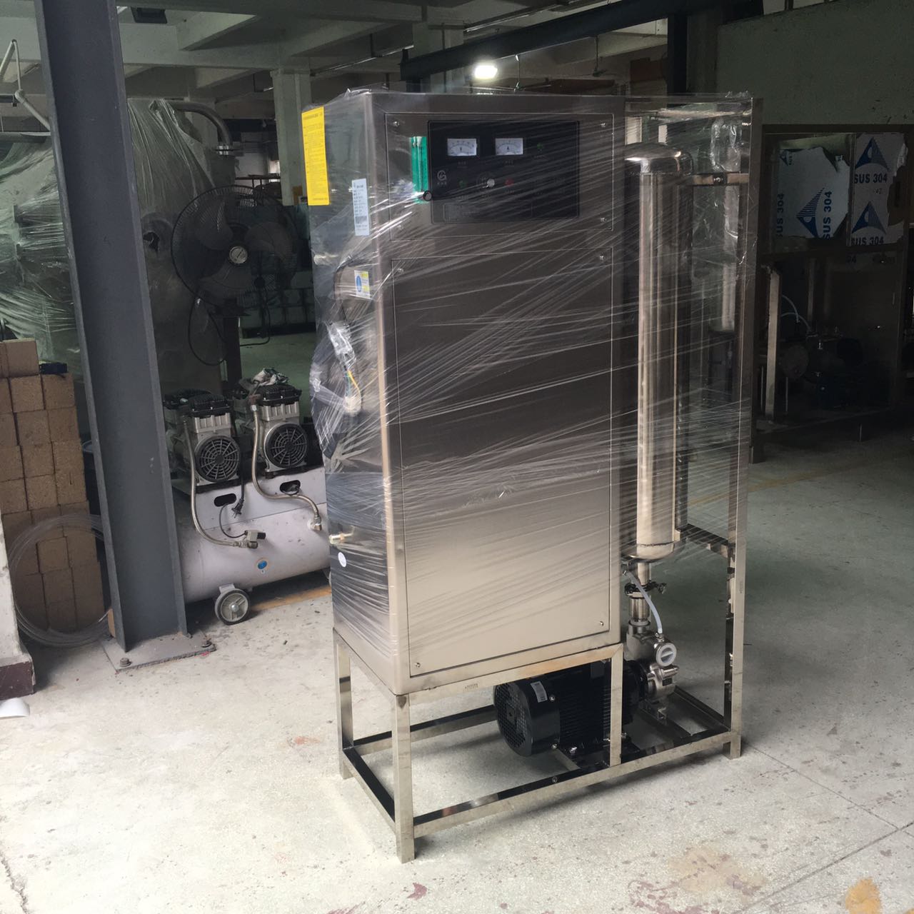 高濃度臭氧水(純凈水或符合市政要求的自來水)可通過廣州賈環的YT-S系列設備,然后通電產生10PPM的高濃度臭氧消毒水。通過對生產設備的全面清洗,可以達到滅菌的效果。